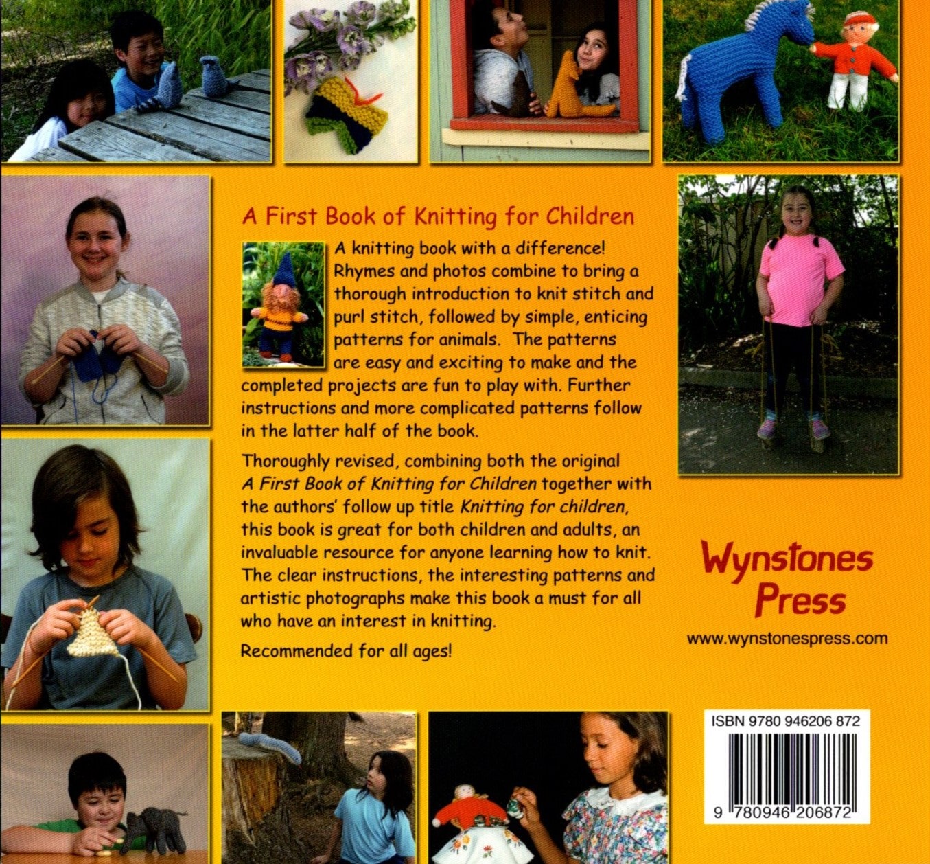 A knitting book with a difference! Rhymes and photos bring a thorough introduction to knit stitch and purl stitch, followed by simple, enticing patterns for animals. The patterns are easy and exciting to make, and the completed projects are fun to play with. More complicated instructions and patterns follow in the second half of the book.