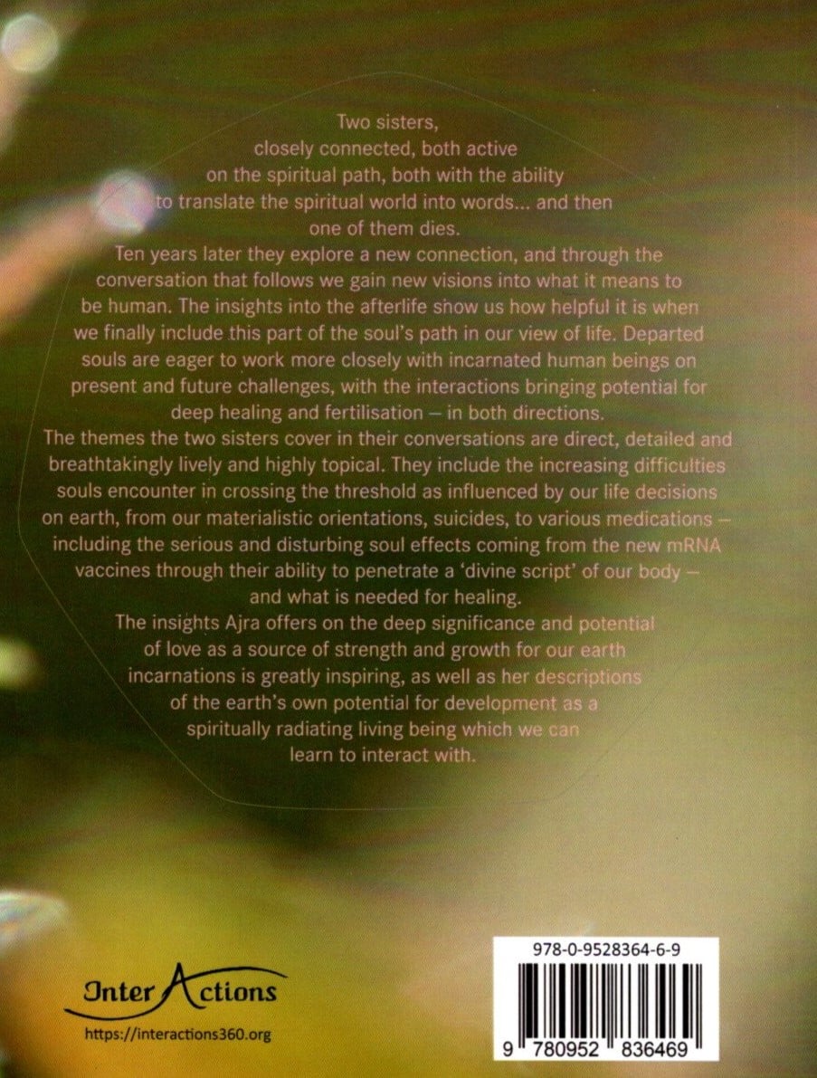 The themes the two sisters cover in their conversations are direct, detailed and breathtakingly lively and highly topical. They include the increasing difficulties souls encounter in crossing the threshold as influenced by our life decisions on earth, from our materialistic orientations, suicides, to various medications and what is needed for healing.