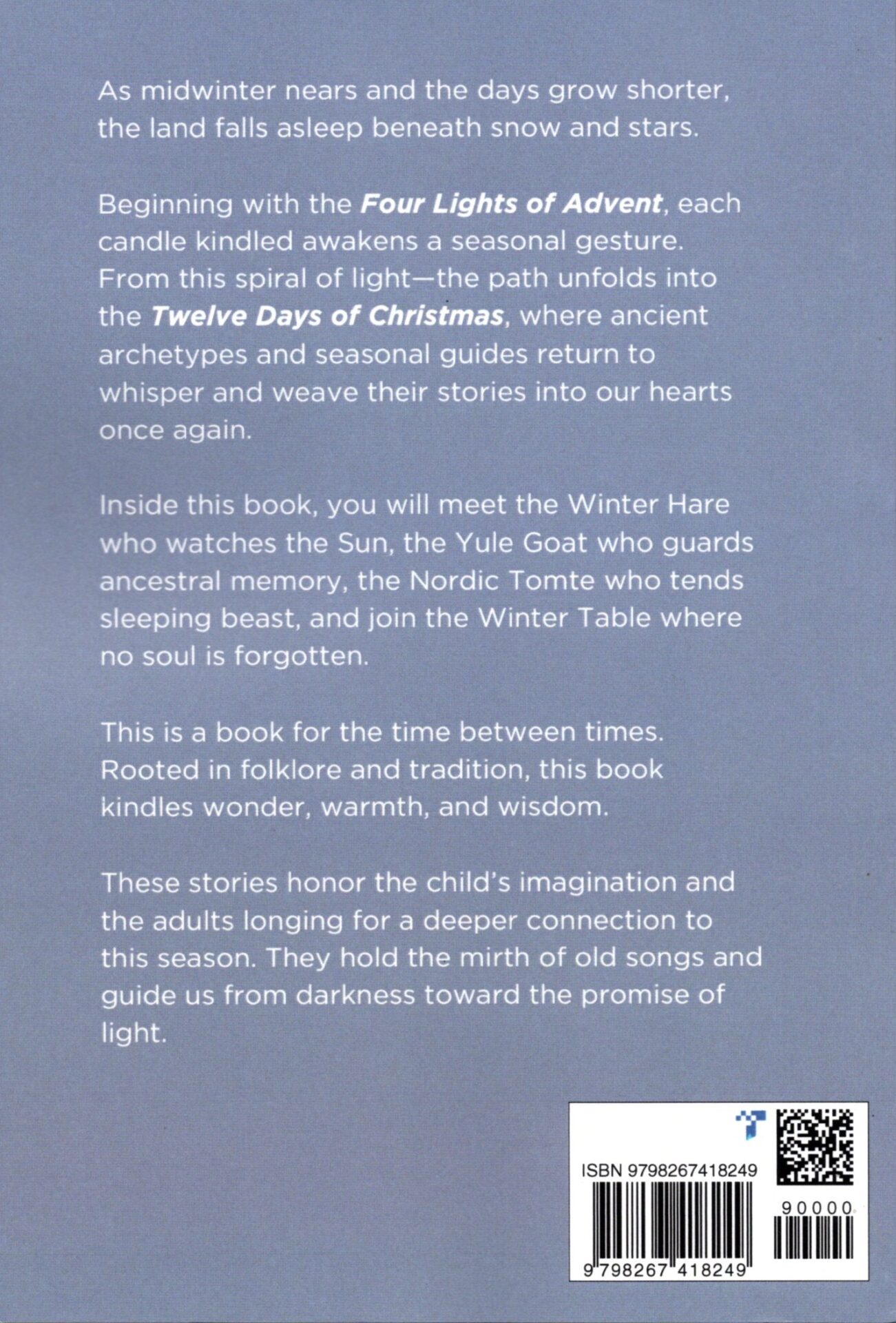 Inside this book, you will meet the Winter Hare who watches the Sun, the Yule Goat who guards ancestral memory, the Nordic Tomte who tends sleeping beast, and join the Winter Table where no soul is forgotten.