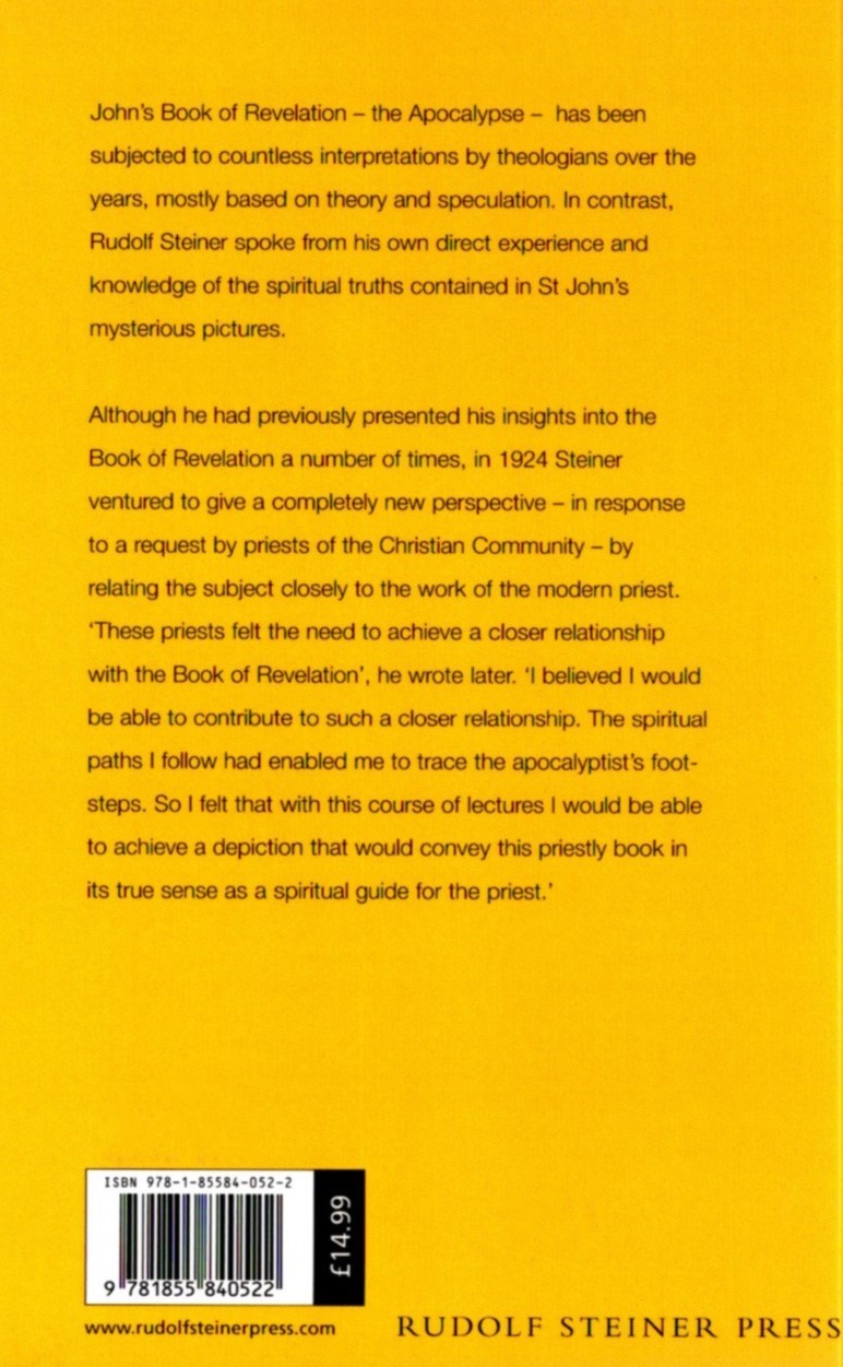 Rudolf Steiner had already presented his insights on the Apocalypse to various audiences, but in 1924 he presented a completely new perspective. This time, his comments were in response to requests from priests of The Christian Community, the movement for religious renewal, which itself had taken form on the basis of Steiner’s insights.