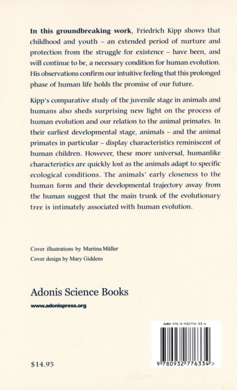 In this accessible and groundbreaking work, Friedrich Kipp shows that childhood and youth—an extended period of nurture and protection from the struggle for existence—have been, and will continue to be, a necessary condition for human evolution. His observations confirm our intuitive feeling that this prolonged phase of human life holds the promise of our future.
