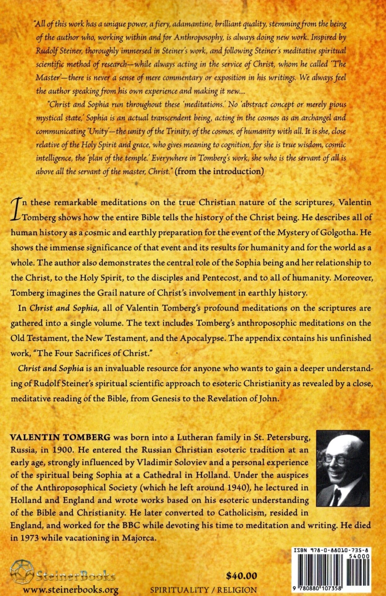 Christ and Sophia contains all of Valentin Tomberg’s essential anthroposophic works on the scriptures, providing an invaluable resource for anyone who wishes to gain a deeper understanding of Rudolf Steiner’s spiritual scientific approach to esoteric Christianity, as revealed by a close, meditative reading of the Bible—from Genesis to John’s Revelation.