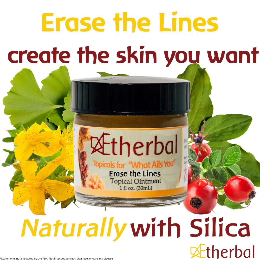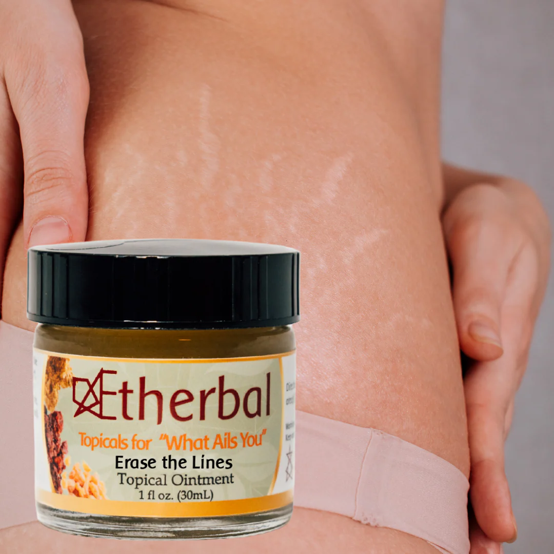 Erase the Lines was created for skin that tells a story — whether from age, childbirth, surgery, or life’s natural changes. This expertly crafted topical blends Orthosilicic Acid with herbs like Gotu Kola and plantain, long valued for skin vitality, and luxurious oils such as moringa and rosehip. The result is a silky formula designed to refine the skin’s visible texture, reduce the look of lines, and support a radiant, youthful appearance. Whether you have a challenging scar or are looking to reduce the possibility of stretch marks during pregnancy, this topical provides the essentials your skin needs and is backed by the science of gotu kola and our patent-pending formula.