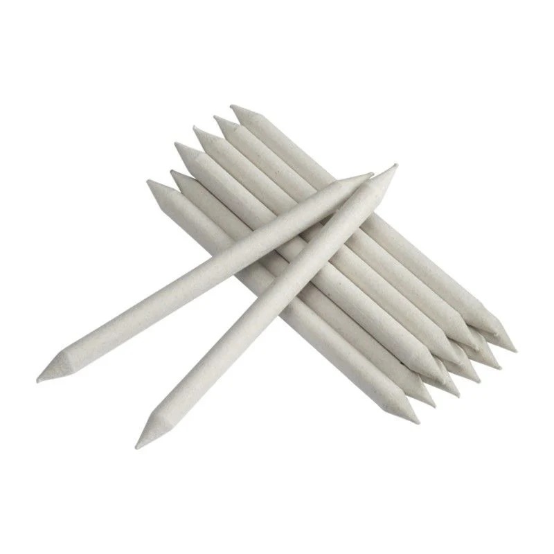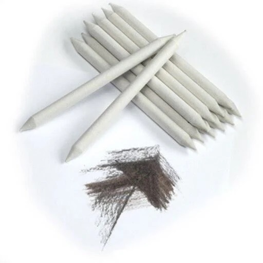 Made from compressed paper, for erasing and retouching charcoal and graphite drawings.