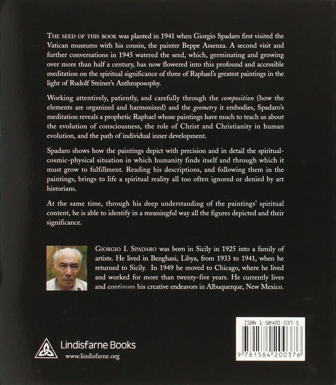 The seed of this book was planted in 1941, when Giorgio Spadaro first visited the Vatican Museums with his cousin, the painter Beppe Assenza. A second visit and further conversations in 1945 watered the seed, which germinated and grew over more than half a century. Now it has flowered, in the light of Rudolf Steiner’s Anthroposophy, into this profound and accessible meditation on the spiritual significance of three of Raphael’s greatest paintings: The School of Athens (shown left), The Disputation (below), and The Transfiguration.