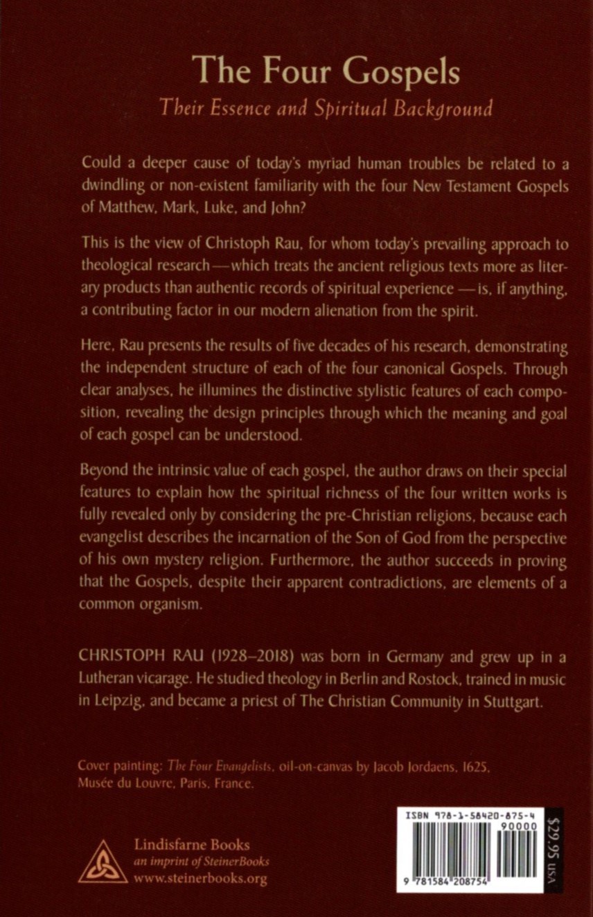 Beyond the intrinsic value of each Gospel, the author draws on their special features to explain how the spiritual richness of the four written works is fully revealed only by considering the pre-Christian religions, because each of the evangelists describes the incarnation of the Son of God from the perspective of his own mystery religion. Furthermore, the author succeeds in showing that the Gospels, despite their seeming contradictions, are elements of a common organism.