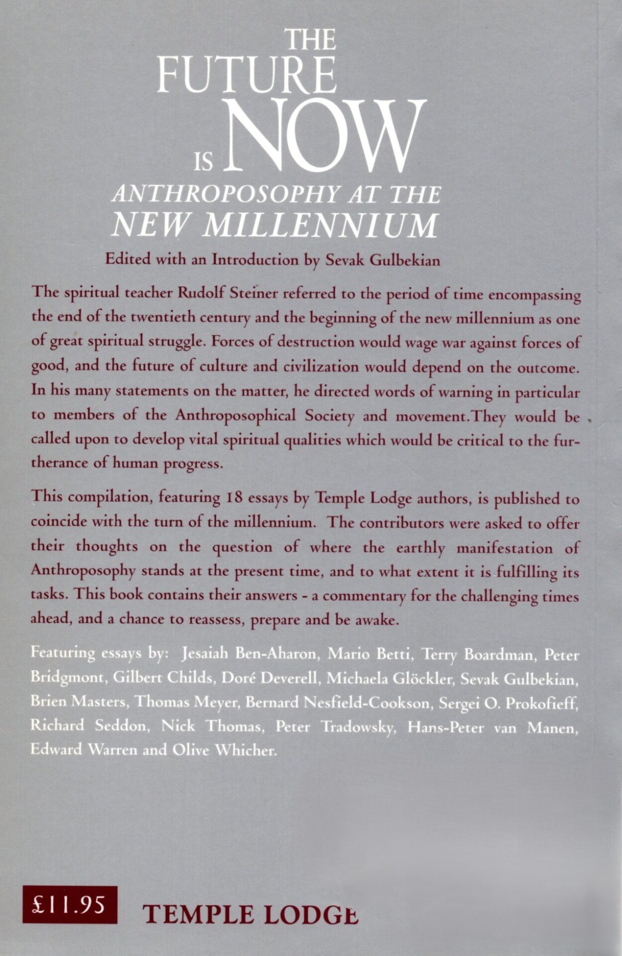 This compilation features eighteen essays by Jesaiah ben-Aharon, Mario Betti, Terry Boardman, Peter Bridgmont, Gilbert Childs, Doré Deverell, Michaela Glöckler, Sevak Gulbekian, Brien Masters, Thomas Meyer, Bernard Nesfield-Cookson, Sergei O. Prokofieff, Richard Seddon, Nick Thomas, Peter Tradowsky, Hans-peter van Manen, Edward Warren, and Olive Whicher.