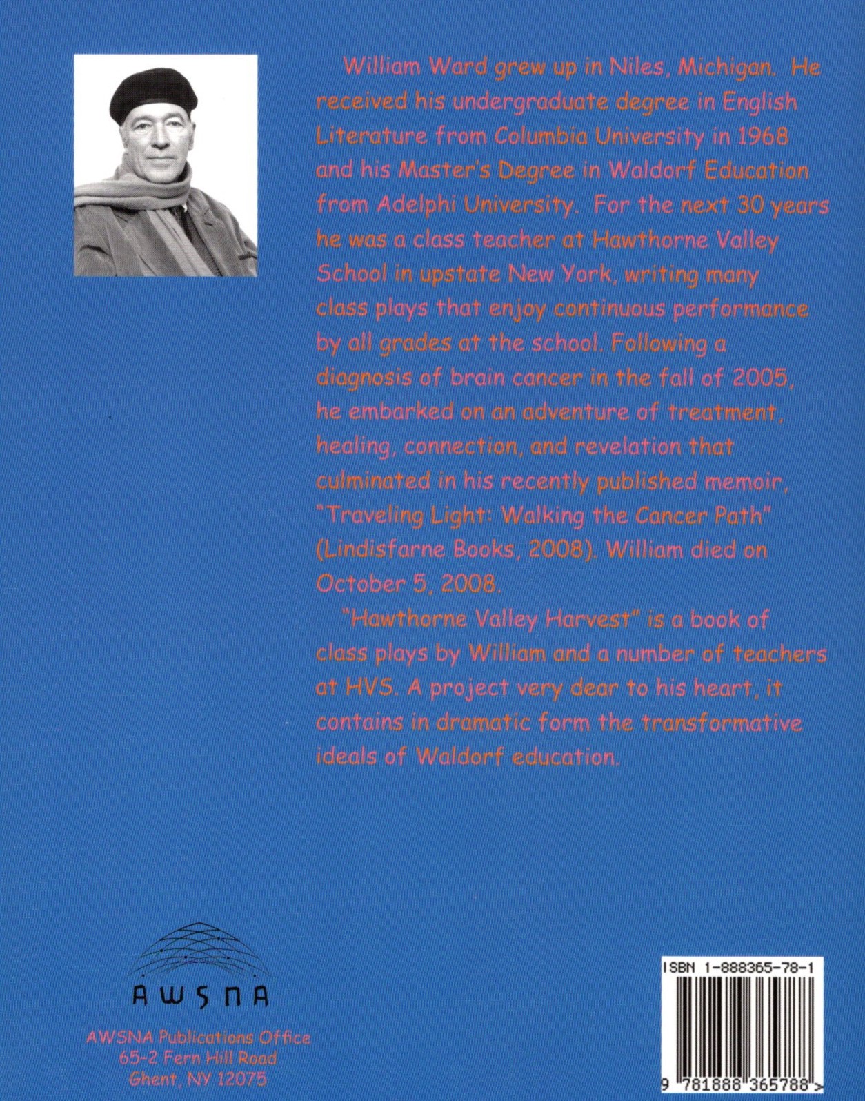 William Ward, a native of Michigan, majored in English literature as an undergraduate at Columbia University before studying elementary education at the Waldorf Institute of Adelphi University, where he received a master’s degree. William was a Waldorf class teacher for twenty-five years at Hawthorne Valley School in Harlemville, New York, from 1976 until 2005. He had taken three full classes from grades 1 to 8 and was in the fourth grade with his fourth class when he retired to deal with the diagnosis of a brain tumor. A lover of the theater, William wrote numerous class plays and festival presentations and collaborated in all-school musical productions. He crossed the threshold October 5, 2008, at the age of sixty-one.