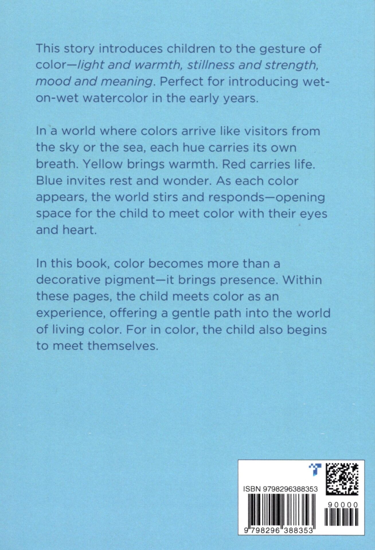 This story introduces children to the gesture of color–light and warmth, stillness and strength, mood and meaning. Perfect for introducing wet-on-wet watercolor in the early years.