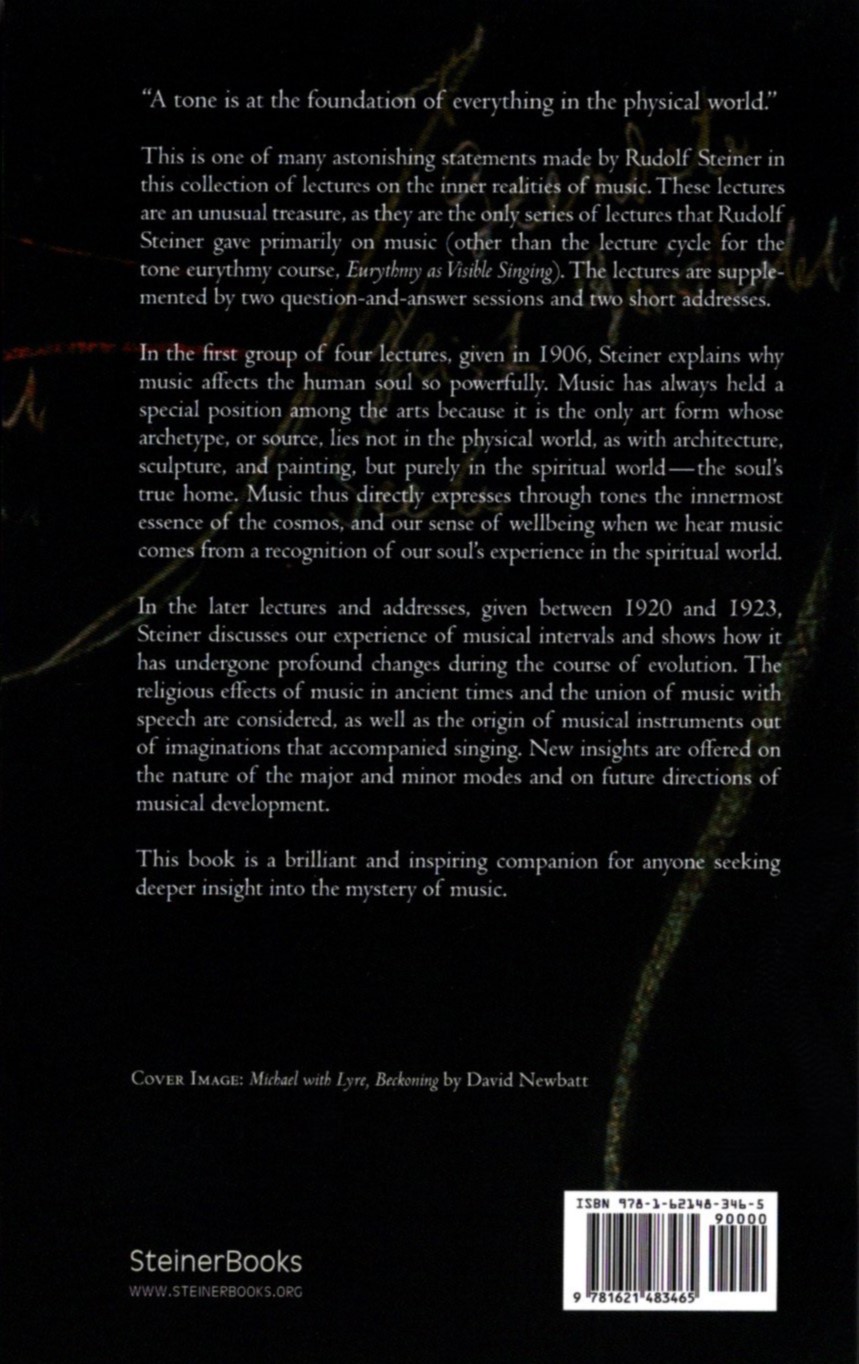 This is one of many astonishing statements made by Rudolf Steiner in this collection of seven lectures on the inner realities of music. These lectures are an unusual treasure, since they are the only two groups of lectures that Steiner gave primarily on music, other than the lecture cycle for the tone eurythmy course, Eurythmy as Visible Music.