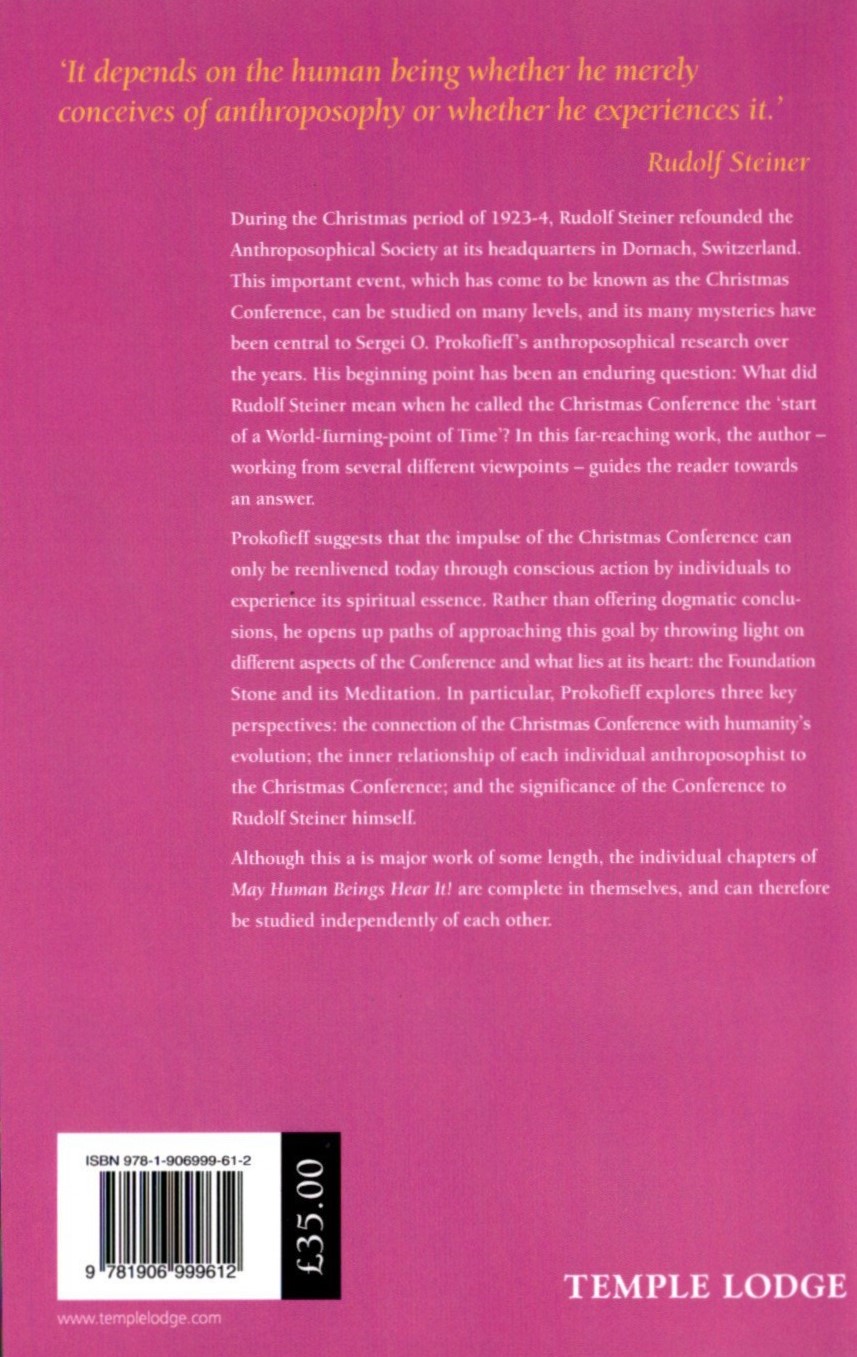 Although this is major work of some length, the individual chapters of May Human Beings Hear It! are complete in themselves, and can therefore be studied independently of each other.