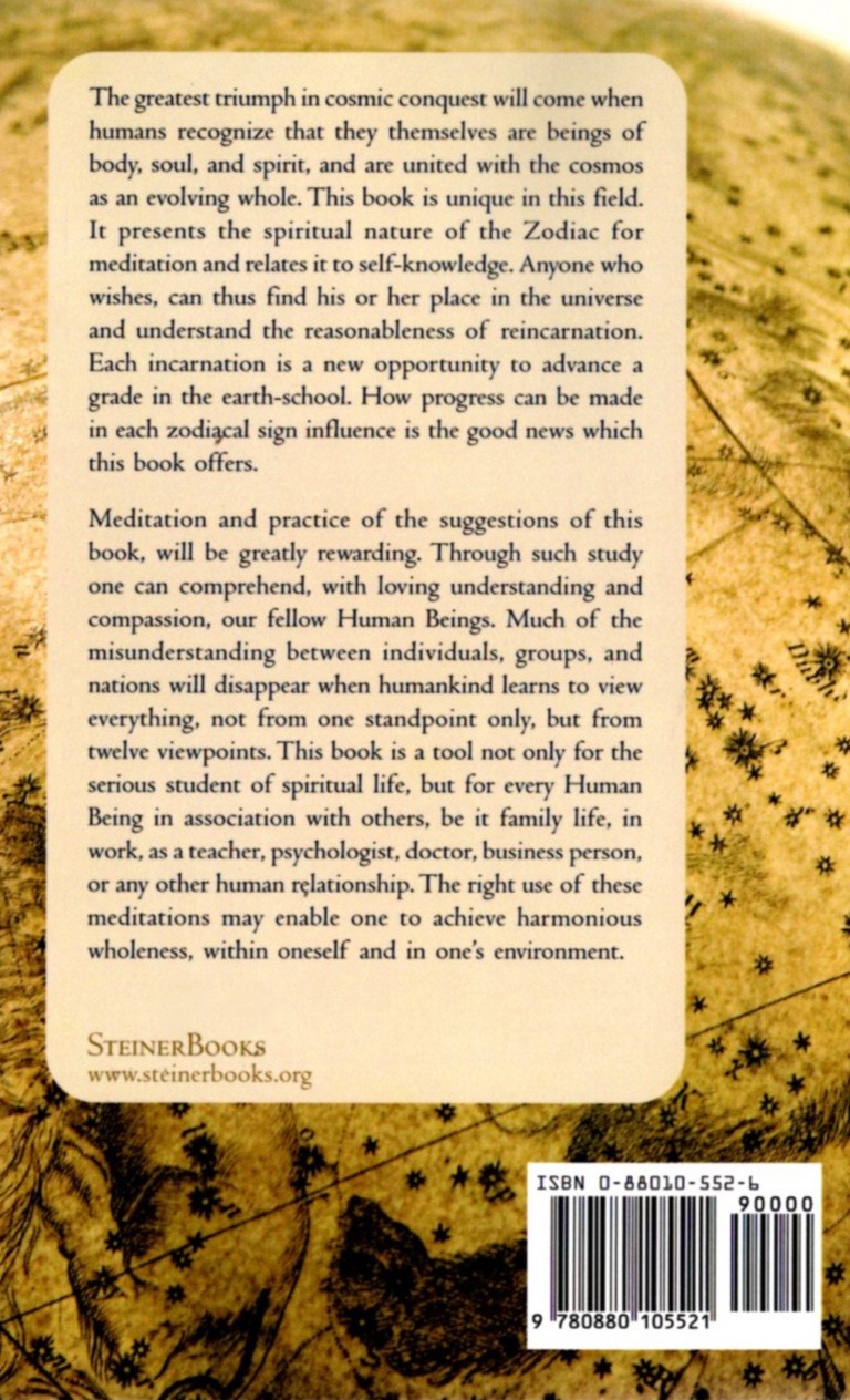 This book is a tool not only for the serious student of spiritual life, but for every human being in his association with others, be it family life, in work, as a teacher, psychologist, doctor, business man, or any other human relationship. The Right use of these meditation enable one to achieve harmonious wholeness, within oneself and in one’s environment. Such an approach to the divine design of the cosmos and man’s place in it, awakens wonder, and develops increasing humility and reverence in the presence of the infinitely sublime divinity of the Zodiac.