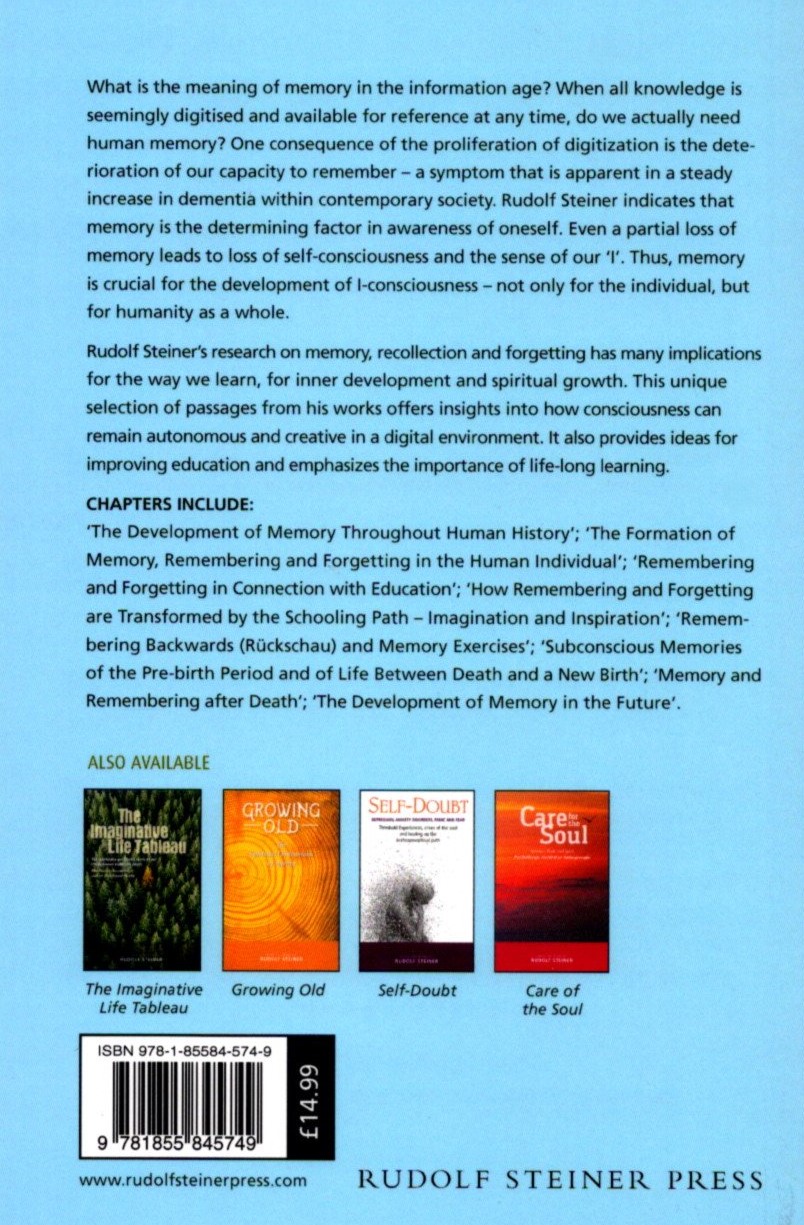 Steiner’s research into memory, recollection, and forgetting has many implications for the way we learn and for inner development and spiritual growth. This unique selection of passages from his works offers insights into ways that consciousness can remain autonomous and creative in today’s digital environment. It also provides ideas for improving education and emphasizes the importance of lifelong learning.