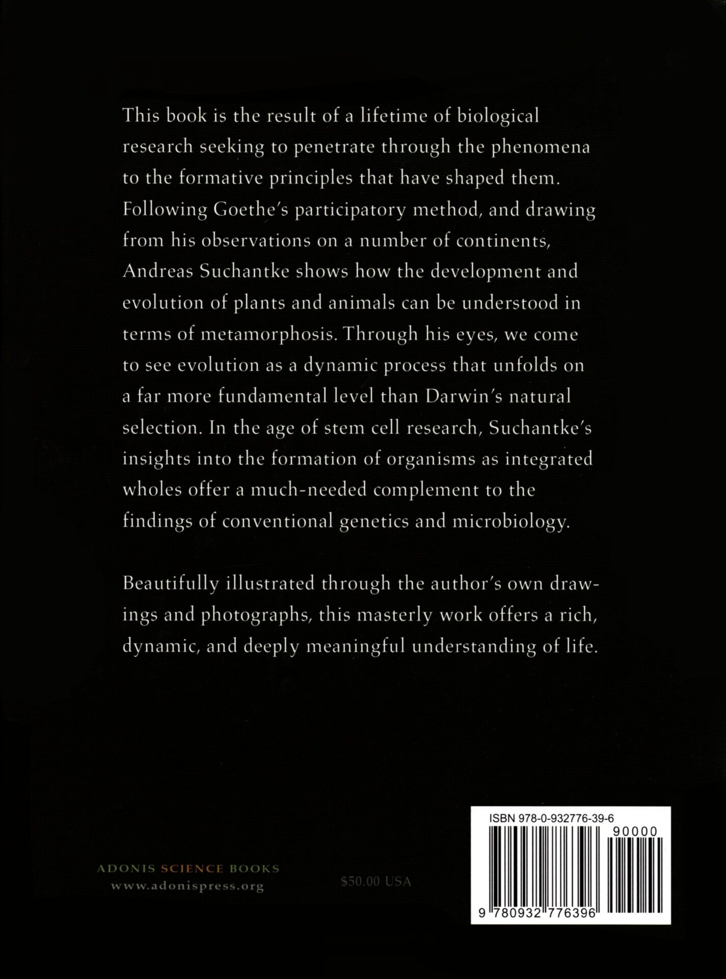 Metamorphosis is the result of a lifetime of biological research seeking to penetrate through the phenomena to the formative principles that have shaped them. Following Goethe’s participatory method, and drawing on his observations on a number of continents, Andreas Suchantke shows how the development and evolution of plants and animals can be understood in terms of metamorphosis. Through his eyes, we come to see evolution as a dynamic process that unfolds on a far more fundamental level than Darwin’s natural selection. In the age of stem cell research, Suchantke’s insights into the formation of organisms as integrated wholes offer a much-needed complement to the findings of conventional genetics and microbiology.