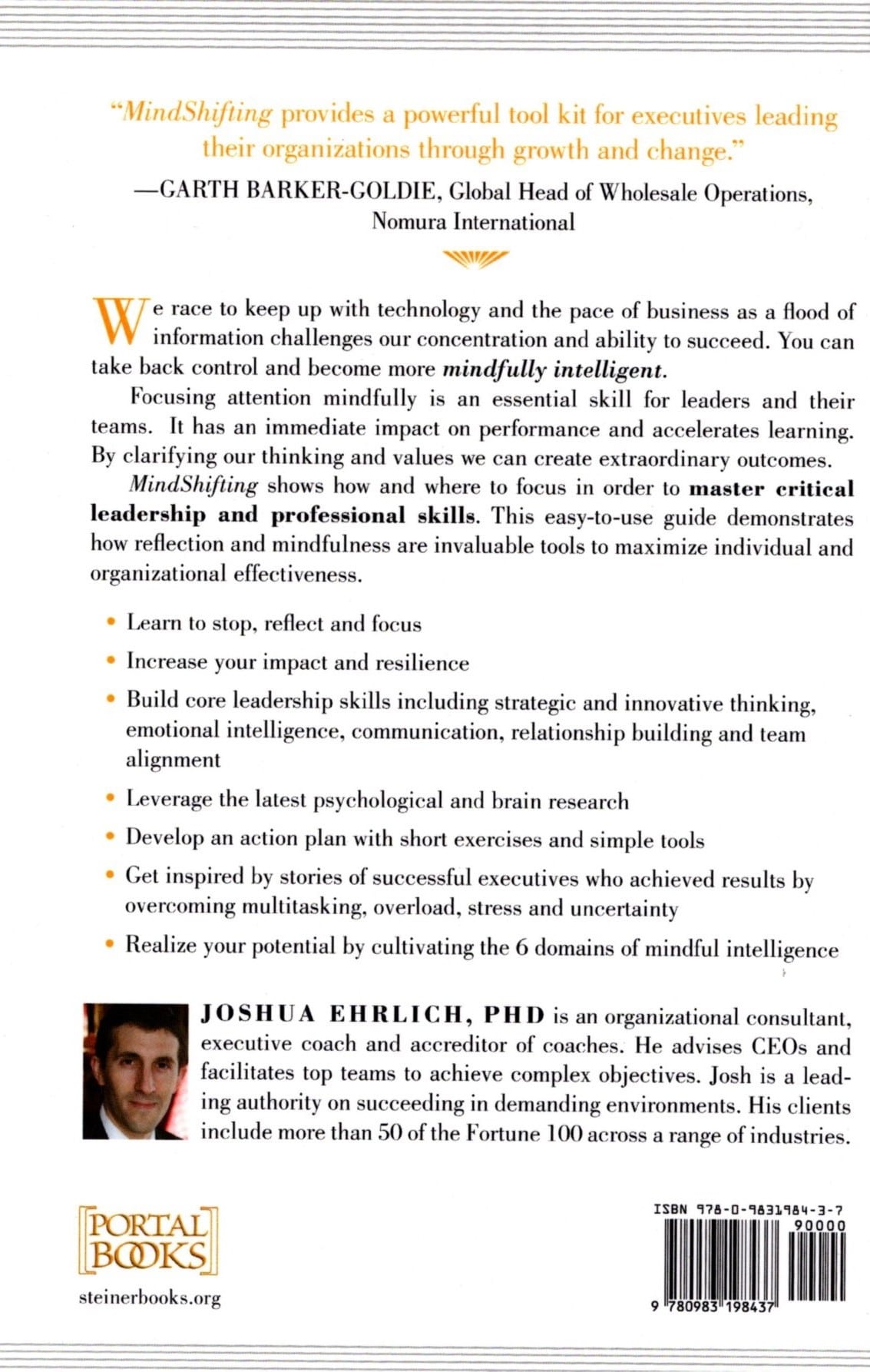 MindShifting provides a practical roadmap of where and how to focus in order to master critical leadership and professional skills. This easy to use guide illustrates how reflection and mindfulness are powerful tools to maximize individual and organizational effectiveness.