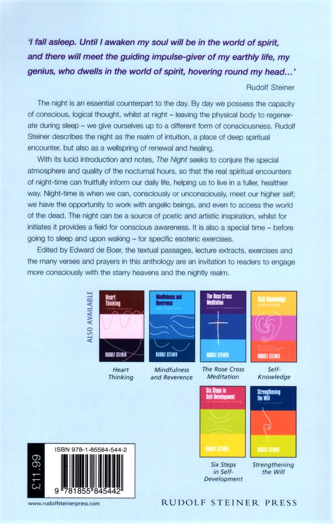 Edited by Edward de Boer, this anthology offers textual passages, lecture extracts, exercises, and many verses and prayers as an invitation to readers to engage more consciously with the starry heavens and the night realm.