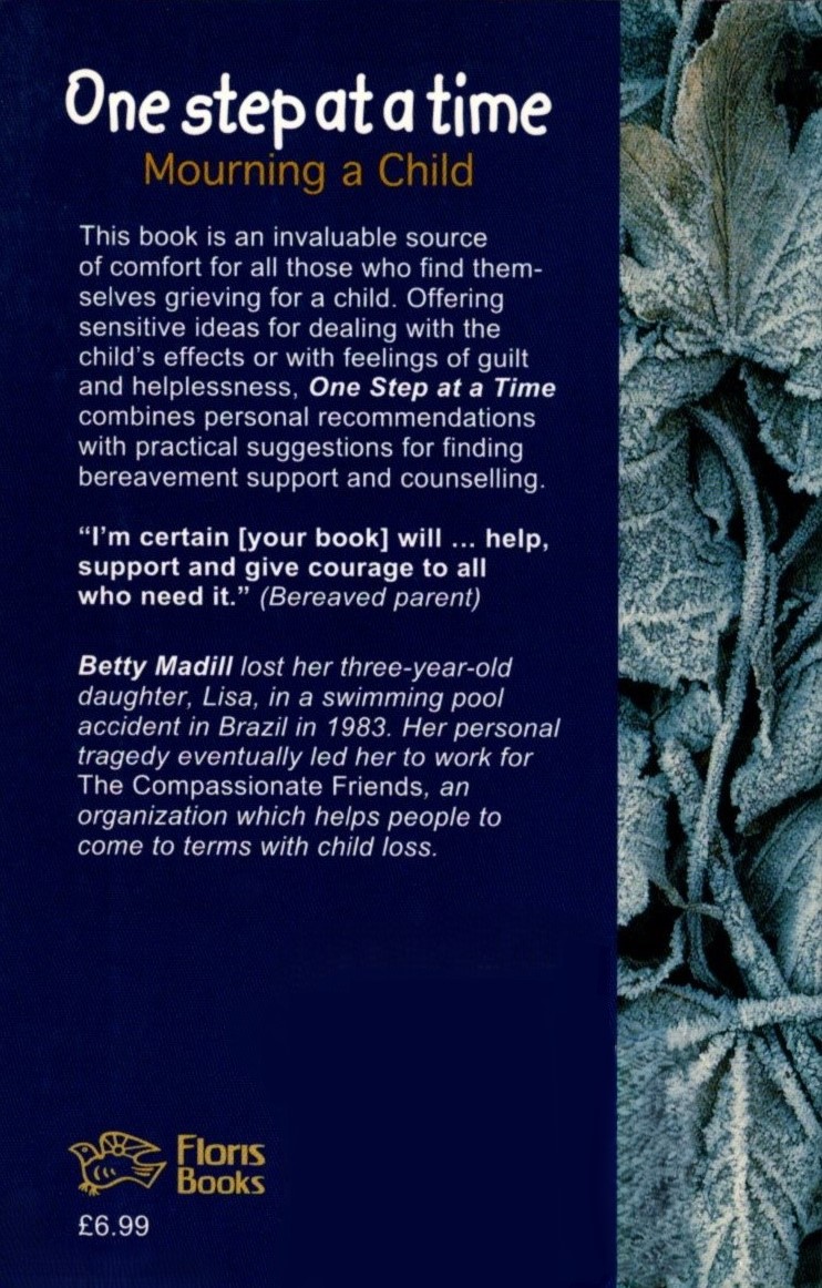 Betty Madill lost her three-year-old daughter, Lisa, in a swimming pool accident in Brazil in 1983. Her personal tragedy eventually led her to work as a counsellor for The Compassionate Friends, an organization which helps people to work through similar loss.