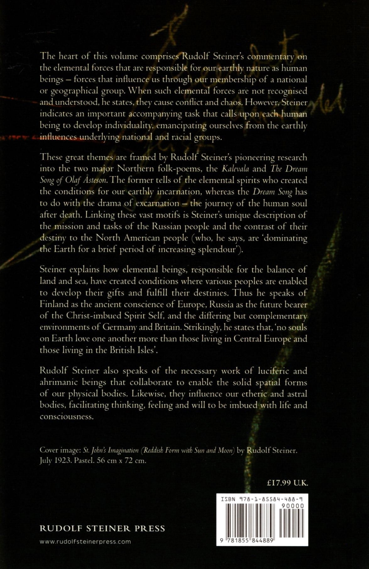 The heart of this volume comprises Rudolf Steiner’s commentary on the elemental forces responsible for our earthly nature as human beings—forces that influence us through our membership of a national or geographical group. When such elemental forces are not recognized and understood, he states, they cause conflict and chaos. However, Steiner indicates an important accompanying task that calls on all of us to develop individuality, emancipating ourselves from the earthly influences underlying national and racial groups.