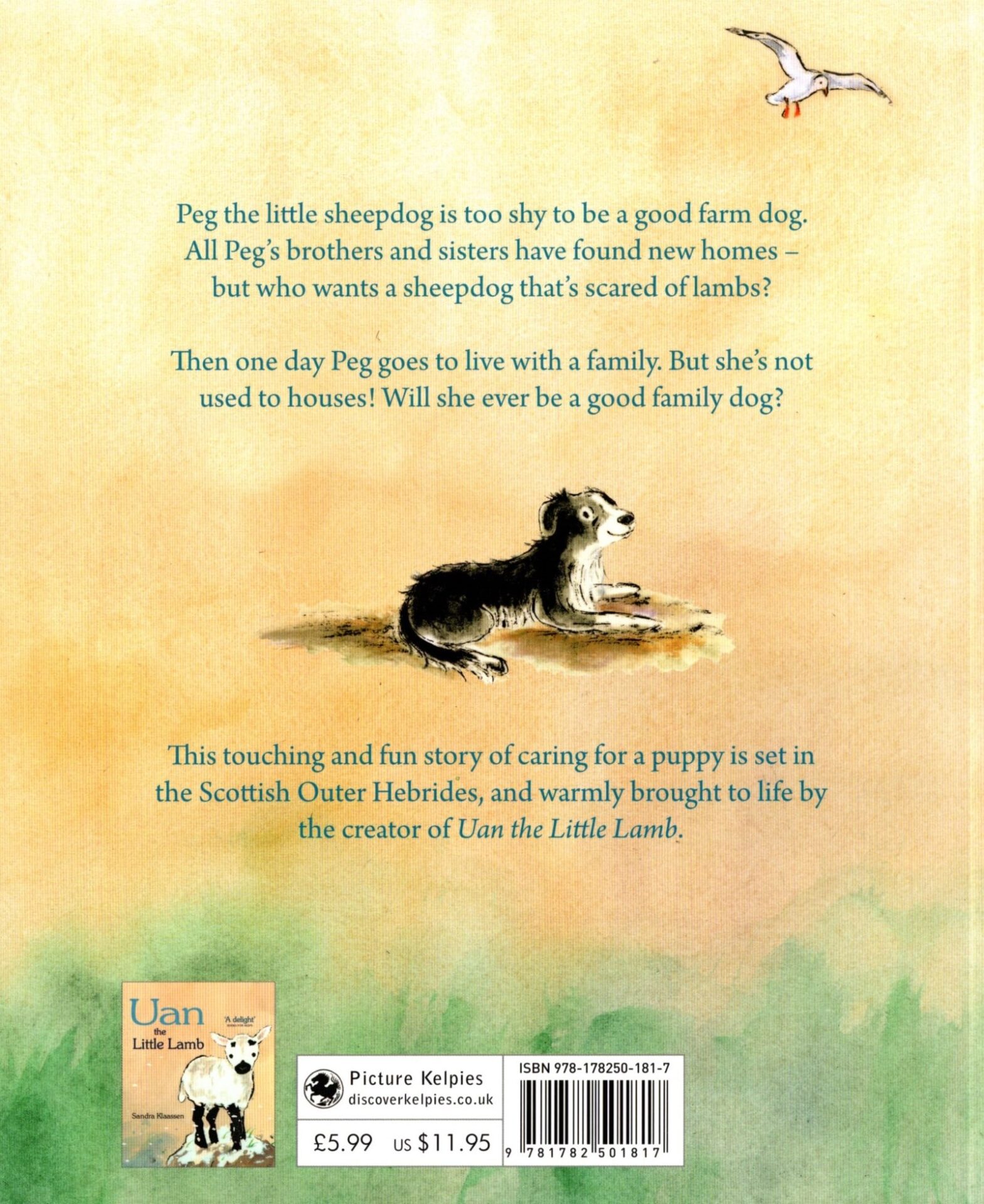 This touching story of family love and teaching a new pet is a wonderful companion to Sandra Klaassen’s much-loved Uan the Little Lamb. Her heartwarming illustrations abound with gentle fun and the beauty of the Scottish Hebrides.