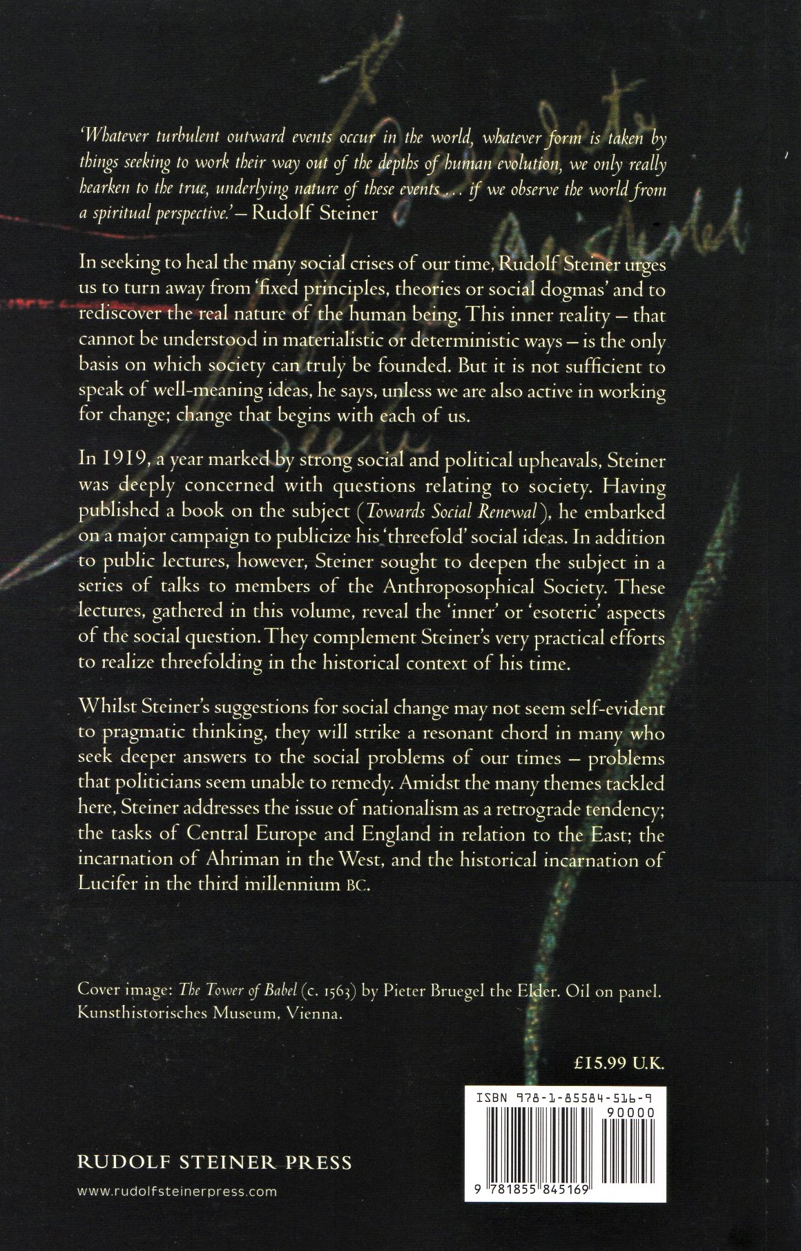 This volume is a complete translation from German of Der innere Aspekt des sozialen Rätsels. Luziferische Vergangenheit und ahrimanische Zukunft (GA 193). Four lectures appeared previously as The Esoteric Aspect of the Social Question: The Individual and Society.