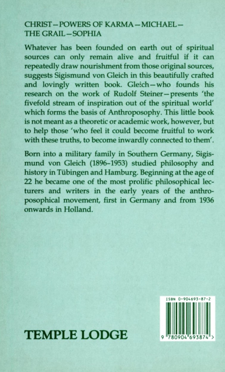 Gleich, who bases his research on Rudolf Steiner’s work, presents “the fivefold stream of inspiration out of the spiritual world,” which is the foundation of Anthroposophy.