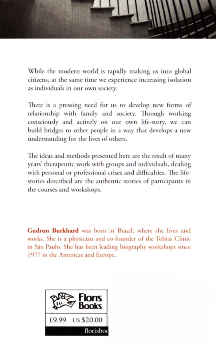 Gudrun Burkhard is doctor, therapist, and author. She was born in Brazil, where she lives and works. She cofounded the Tobias Clinic and Artemesia in São Paolo, which offers courses in biography work. Ms. Burkhard lectures around the world and is the author of Taking Charge: Your Life Patterns and Their Meaning (Floris 1997) and Biographical Counselling (Floris 2007).