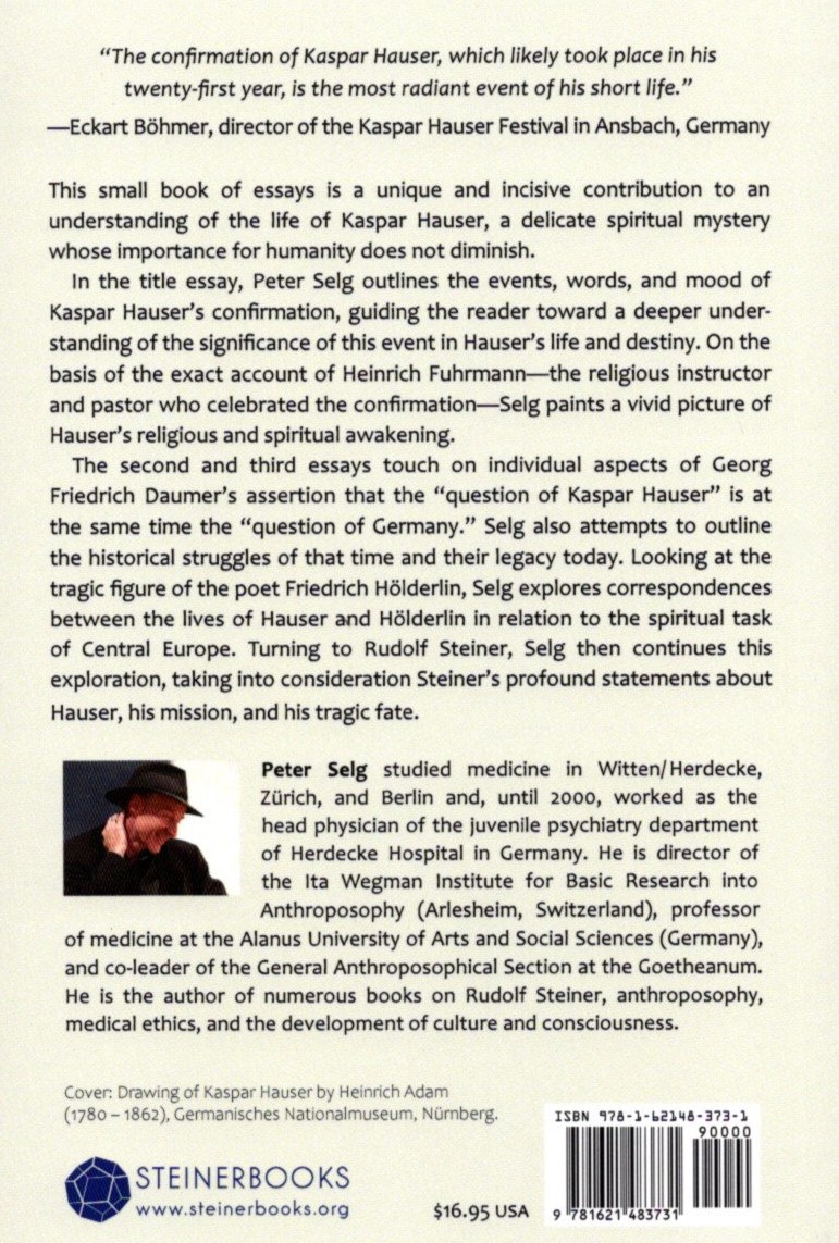 This book is a translation from German of the book Schicksals-Weihe. Die Konfirmation Kaspar Hausers (Verlag des Ita Wegman Instituts, Stuttgart, 2018) and chapters 1 & 2 from Das andere Deutschland. Über Friedrich Hölderlin, Kaspar Hauser und Rudolf Steiner (Verlag des Ita Wegman Instituts, Stuttgart, 2016).