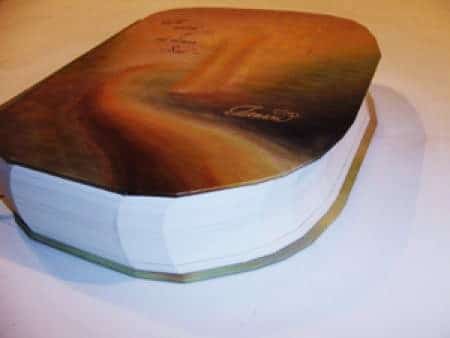 8 x 11 Beautifully handcrafted hardcover book with 21 cut corners and 2″ thick.