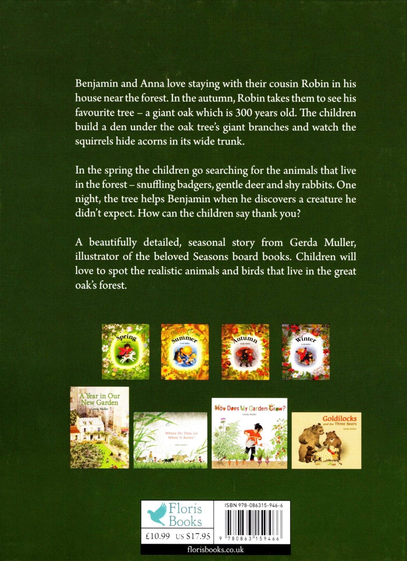 Each time the children visit, they are amazed at how the forest and the mighty oak changes with the seasons. In autumn, they build a cosy den in the tree’s roots to watch the squirrels. In winter, they learn to ski in the shelter of the forest. In spring, they search the forest for animals. But some creatures can be dangerous, and one night, the old oak tree helps Benjamin when he discovers something he wasn’t expecting . . .